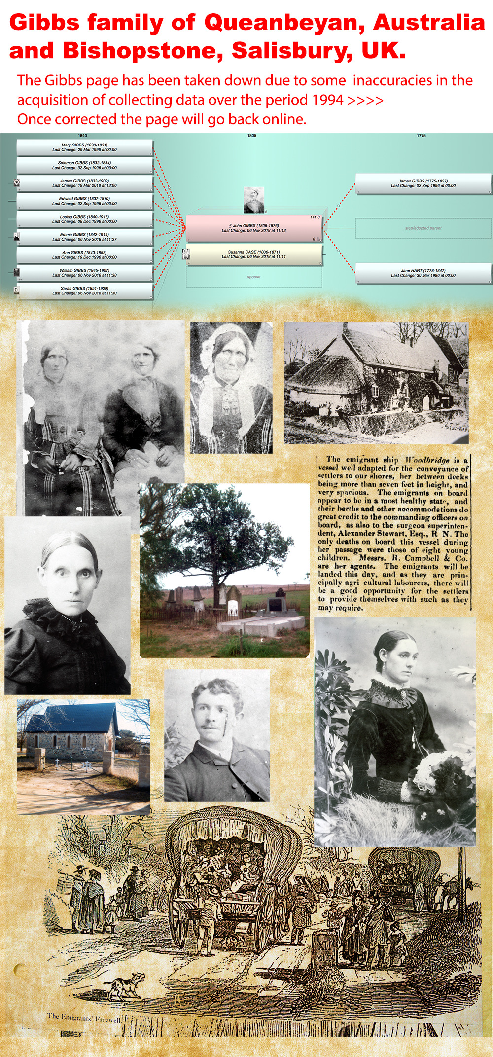 Gibbs family of Queanbeyan, Australia and Bishopstone, Salisbury, UK.