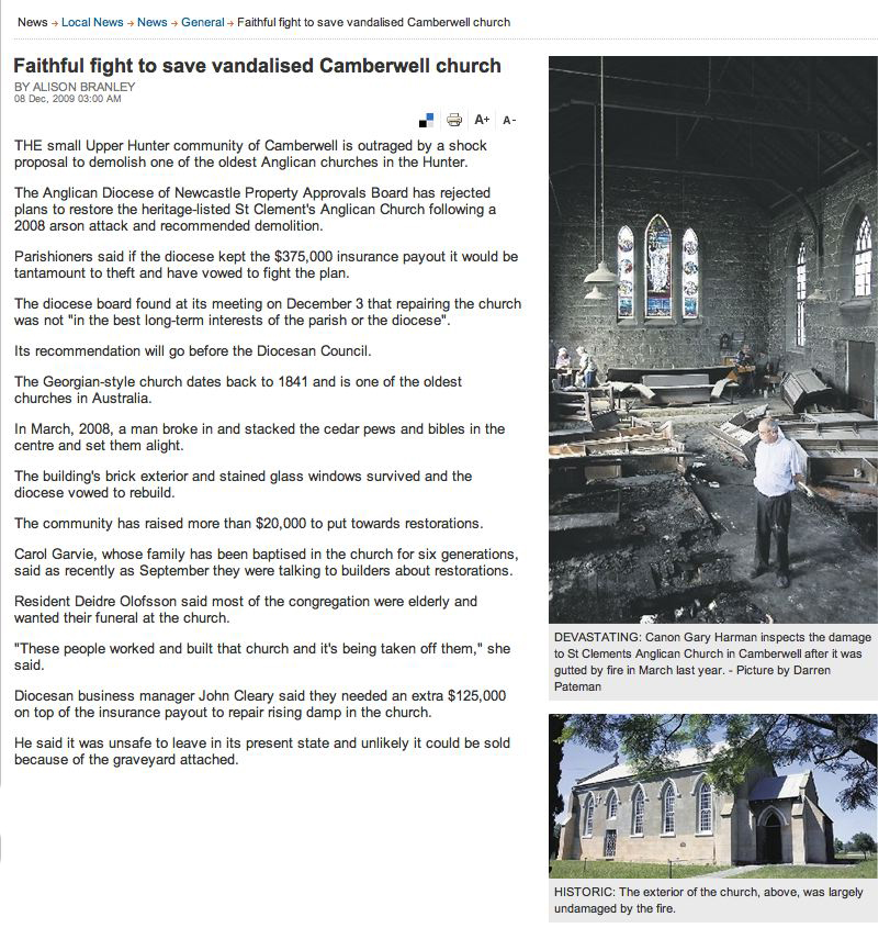 | Faithful fight to save vandalised Camberwell church BY ALISON BRANLEY 08 Dec, 2009 |